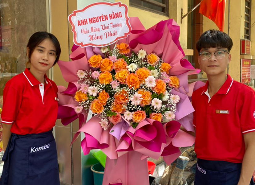 Những lẵng hoa tươi thắm được gửi đến chúc mừng khai trương